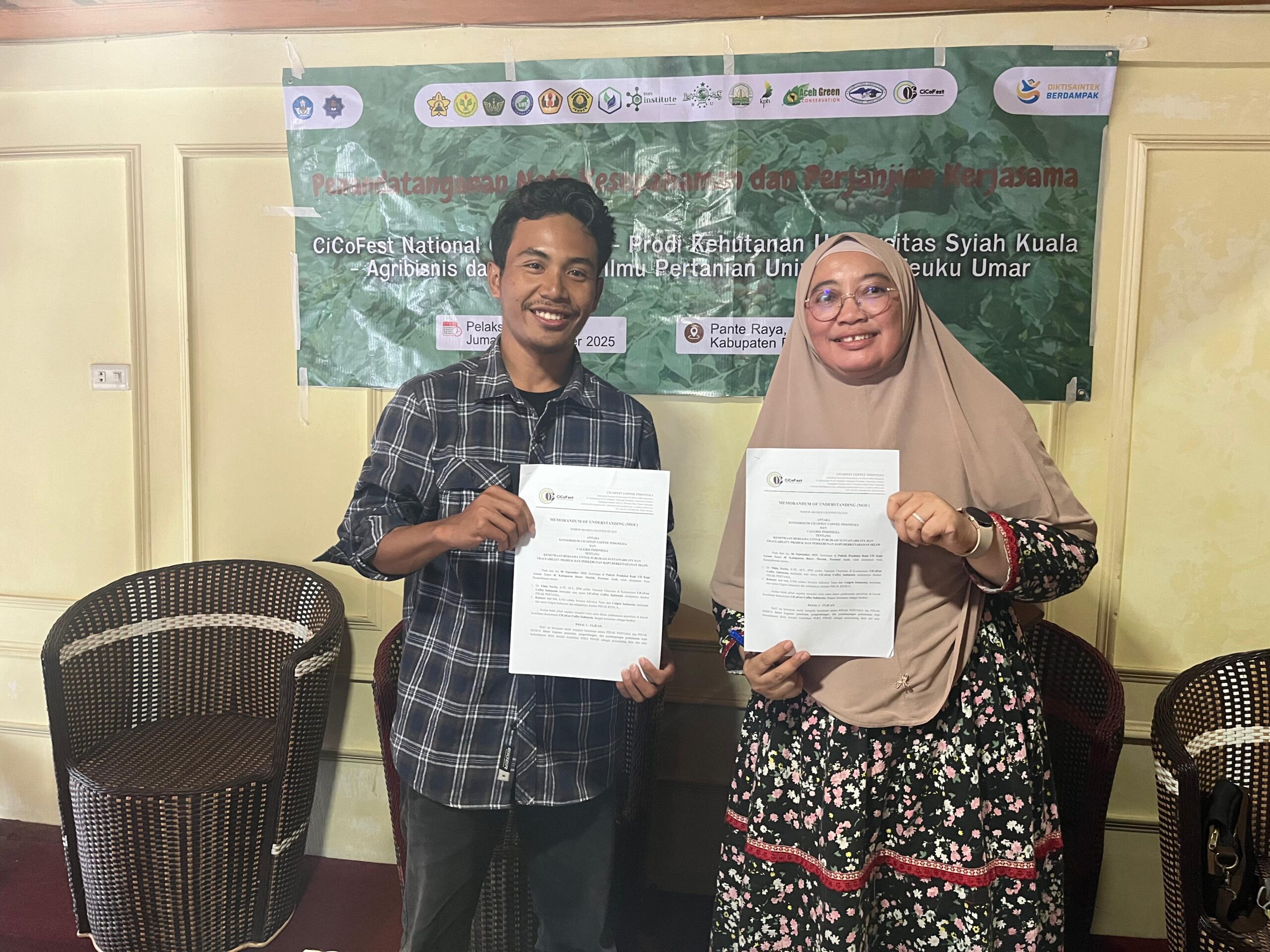 Science Advisory Team dari Calgris Indonesia, Rahmat Asy’Ari, S.Hut, melakukan penandatangan MoU bersama Konsorsium CiCoFest Coffee Indonesia untuk pengembangan sistem traceability…